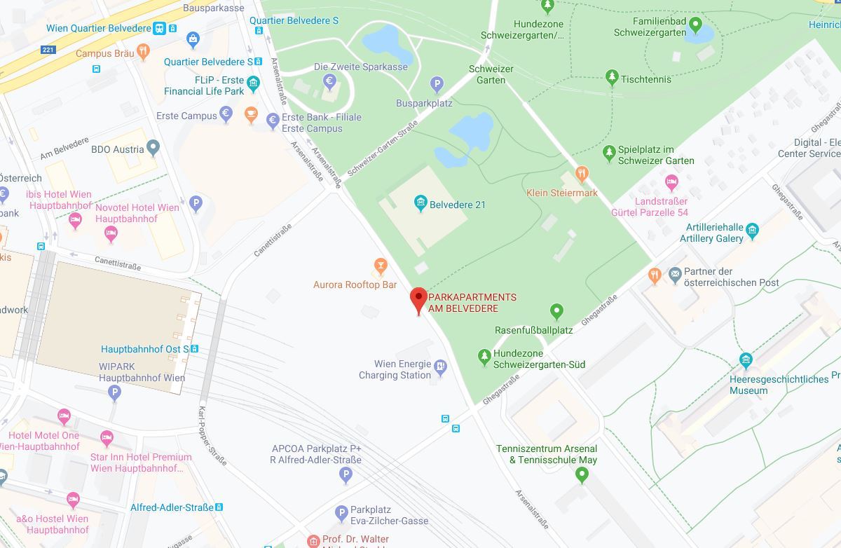 Es ist das größte innerstädtische Stadtentwicklungsgebiet: Das Quartier Belvedere im 10. Wiener Gemeindebezirk „Favoriten“. Entstanden aus der Zusammenführung von Ost- und Südbahnhof, beheimatet das über 10 000 Quadratmeter große Grundstück nun einen neuen Zentralbahnhof sowie die neuen Stadtteile Sonnwendviertel und Quartier Belvedere. Neben der guten Infrastruktur und den angrenzenden Grünanlagen Schweizergarten, Schlossgarten Belvedere und Botanischer Garten bietet das Quartier auch einen hervorragenden Panoramablick über das Zentrum Wiens. Die beste Voraussetzung hierfür versprechen die 346 Wohnungen der Parkapartments und 303 Hotelzimmer am Belvedere in exponierter Lage. Auf neun Meter Höhe beginnen die ersten Etagen, in 60 Meter enden sie. Somit liegen die Wohneinheiten nicht nur über den Baumkronen des Schweizergartens, sondern auch weit genug von den Lärmquellen des Zug- und Autoverkehrs entfernt.